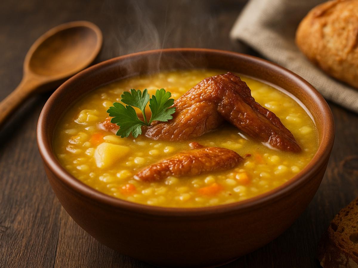 Сытный суп из черноглазого гороха давно считается блюдом, которое приносит ощущение уюта и благополучия, особенно в холодное время года. Его часто готовят к Новому году, но он одинаково хорош и для обычного зимнего ужина. Насыщенный вкус мяса, бобовых и специй делает этот суп полноценным обедом для всей семьи. Об этом рассказывают кулинарные материалы Allrecipes. Почему черноглазый гороховый суп так популярен Черноглазый горох ценят за питательность и мягкий вкус, который легко сочетается с мясом и овощами. В супах он сохраняет форму, но становится нежным, создавая густую и насыщенную текстуру — по этому принципу строятся и другие уютные первые блюда, включая варианты вроде бархатистого горохового супа. В сочетании со свиной колбасой и говяжьим фаршем блюдо получается особенно сытным и хорошо согревающим. Такой суп часто готовят большими порциями: он хорошо хранится, становится еще вкуснее на следующий день и отлично подходит для семейных обедов в холодные вечера.
