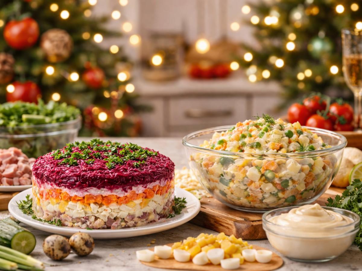 Новый год всё ближе, а значит, на столах снова появится оливье — салат, без которого многие не представляют праздник. Классический рецепт давно знаком, но именно в этом году всё больше хозяек ищут способ удивить гостей. Небольшая деталь способна полностью изменить привычный вкус и превратить знакомое блюдо в кулинарное открытие. Классический оливье как база для экспериментов Традиционный состав оливье редко вызывает споры. В салат обычно входят яйца, отварной картофель и морковь, солёные огурцы, зелёный горошек, репчатый лук, майонез и мясная основа — варёная колбаса или курица. Именно эта нейтральная комбинация делает блюдо удобной основой для экспериментов. Небольшое дополнение может изменить баланс вкуса, добавить глубину или неожиданную свежесть. Главное — не перегружать салат и соблюдать пропорции, чтобы оливье остался узнаваемым.